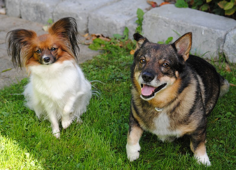 Fram emot kvällen var det så dags för rallylydnadsträning. Vi hade celebert besök! Syrran och Zoya följde med och tittade på för att se om detta kanske kunde vara något för en liten papillonfröken? Zoya tittade och tittade. Hon tittade på flattar och lagottosar och små terriers och samojeder och vättar som satt, stod, låg, snurrade och hade sig. Oerhört intresserat begrundade hon allt och jag tror att till våren så kommer det nog att bli en papillondam som ger sig ut på appellplanen.